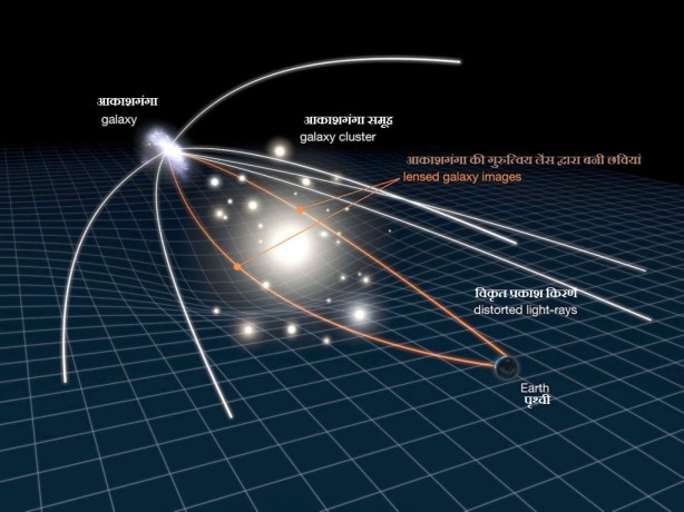 यह आकाशगंगा इस श्याम विवर द्वारा उतसर्जित प्रकाश को वक्र कर (मोड़) देती है, इस प्रक्रिया को गुरुत्विय लेंसींग(gravitational lensing) कहा जाता है। प्रकाशकिरणो मे आयी यह वक्रता दूरस्थ श्याम विवर की प्रकाश किरणो को केंद्रित(focus) कर देती है जिससे उनके मापन मे सहायता मीलती है। हम जानते है कि श्याम विवर केवल अवशोषण करता है, वह हमे दिखायी नही देता है। इसलिये श्यामविवर से उत्सर्जित प्रकाश किरणे वास्तविकता मे उस श्याम विवर के चारो ओर स्थित धूल और गैस के वलय (अक्रिशन डिस्क-accretion disks) से उत्सर्जित X किरणे ही होती है। इस अक्रिशन डिस्क उत्सर्जित X किरणो से श्याम विवर के आसपास एक लाखों डीग्री तापमान का बादल सा बनता है जिसे आभामंडल(कोरोना-corona) कहते है। इस बादल की श्याम विवर से दूरी श्याम विवर की घूर्णन गति पर निर्भर है, जितनी अधिक घूर्णन गति उतनी कम दूरी।