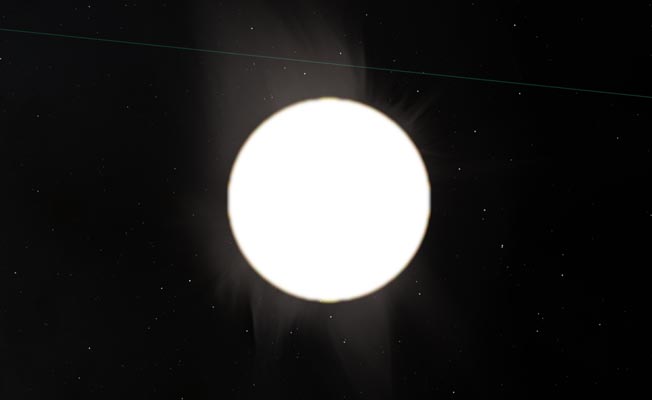 पृथ्वी पर वातावरण है। सूर्य प्रकाश वातावरण की परतो से गुजरता हुआ प्रकिर्णन के प्रभाव से लाल, केसरिया और पीला दिखायी देता है। अंतरिक्ष मे वातावरण नही है इसलिये सूर्य सफेद दिखायी देता है।