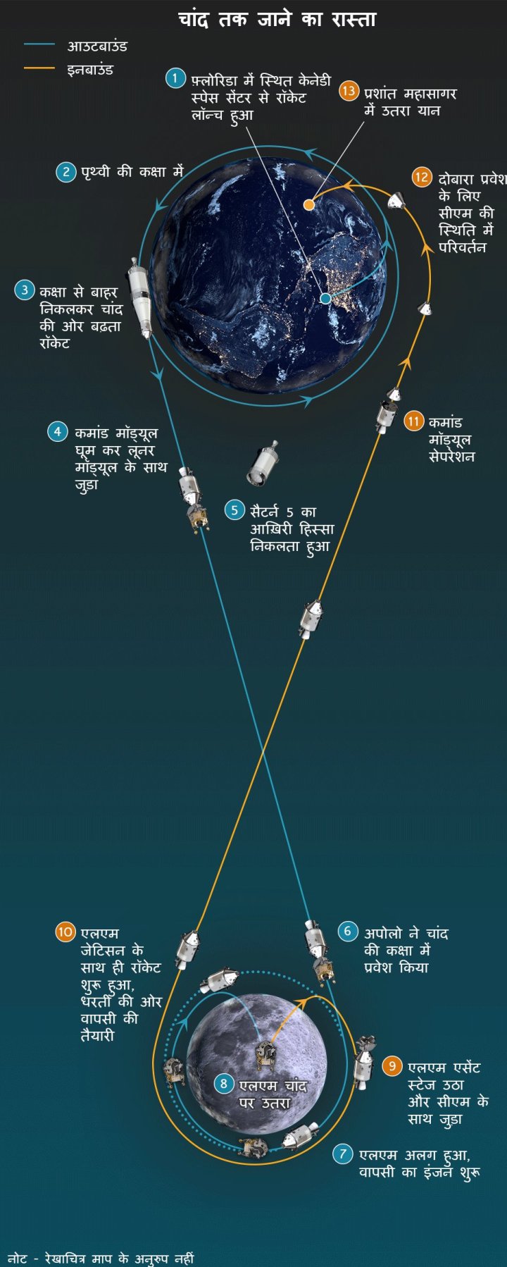 ‘हम एक बार पृथ्वी की परिक्रमा करते हैं। करने के लिए बहुत कुछ होता है, क्योंकि हम चाहते हैं कि चंद्रमा की दिशा में आगे बढ़ने से पहले सब कुछ ठीक से काम करे। जब तीसरे चरण के इंजन को चालू करने का आदेश मिलता है, तो इसका मतलब है कि अब सीधे चंद्रमा की तरफ जाना है। अब आपको कोई रोक नहीं सकता।’
