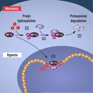 ग्रेग एल सेमेन्ज़ा ने हाइपोक्सिया-इंड्यूसबल फैक्टर(hypoxia-inducible factor: HIF) नामक एक प्रोटीन कॉम्प्लेक्स की पहचान की है। यह प्रोटीन कॉम्प्लेक्स दो प्रोटीनों को एनकोड करता है और ऑक्सीजन स्तर कम होने पर एरिथ्रोपोइटिन उत्पादन को बढ़ा देता है ताकि कोशिकाएं कम ऑक्सीजन की स्थिति में भी अपने आप को समायोजित कर सकें। पीटर जे रैटक्लिफ़ ने खोजा की कोशिकाएं लगातार HIF प्रोटीन बनाती रहती है लेकिन अगर पर्याप्त मात्रा में ऑक्सीजन हो तो कोशिकाएं तुरंत उन HIF प्रोटीनों को नष्ट भी कर देती है।विलियम केलिन एक आनुवंशिक सिंड्रोम का अध्ययन कर रहे थे जिसे वॉन हिप्पेल-लिंडौ रोग(von Hippel-Lindau’s disease) भी कहा जाता है। यह एक वंशानुगत रोज है जिसमें अक्सर मरीजों में अग्नाशय, गुर्दे और अधिवृक्क ग्रंथियों के साथ-साथ केंद्रीय तंत्रिका तंत्र में ट्यूमर की उपस्थिति देखी गयी है यह कैंसर के खतरे को बढ़ा देता है। वॉन हिप्पेल-लिंडौ की बीमारी से ग्रसित परिवार वीएचएल(VHL) नामक जीन में उत्परिवर्तन करते हैं। केलिन ने दिखाया की एक कार्यात्मक VHL जीन के बिना कोशिकाएं निम्न ऑक्सीजन स्थितियों में होनेवाली प्रतिक्रिया देती है अर्थात एरिथ्रोपोइटिन का उत्पादन करती है यह एक संकेत है जो दर्शाती है की कोशिकाओं में ऑक्सीजन की कमी हो गयी है। लेकिन कार्यात्मक VHL जीन जब म्यूटेशन करता है तब कोशिकाएं निम्न ऑक्सीजन स्थितियों में प्रतिक्रिया नही देती। विशेष परिस्थितियों में या कैंसर में एचआईएफ घटक निम्न ऑक्सीजन की प्रतिक्रियाओं को बंद कर सकता है जिससे कोशिकाओं का नाश हो जाता है। केलिन ने जांच में पाया की कैसे VHL जानता है कि HIF को कब टैग करना है और कब उसे अकेला छोड़ना है। जब ऑक्सीजन का स्तर सामान्य होता है तो HIF एक हाइड्रॉक्सिल समूह(ऑक्सीजन का एक अणु और हाइड्रोजन का एक अणु: OH) के साथ प्रतिक्रिया करता है। वास्तव में वह हाइड्रॉक्सिल समूह HIF के विनाश को आरंभ करने के लिए VHL के लिए एक संकेत है। जब ऑक्सीजन का स्तर गिरता है तो वीएचएल को कोई संकेत नही मिल रहा होता है। जिससे एचआईएफ को एरिथ्रोपोइटिन और अन्य प्रोटीन के उत्पादन को जारी करने की अनुमति मिलती है ताकि कम ऑक्सीजन में भी कोशिकाएं जीवित रह सके।