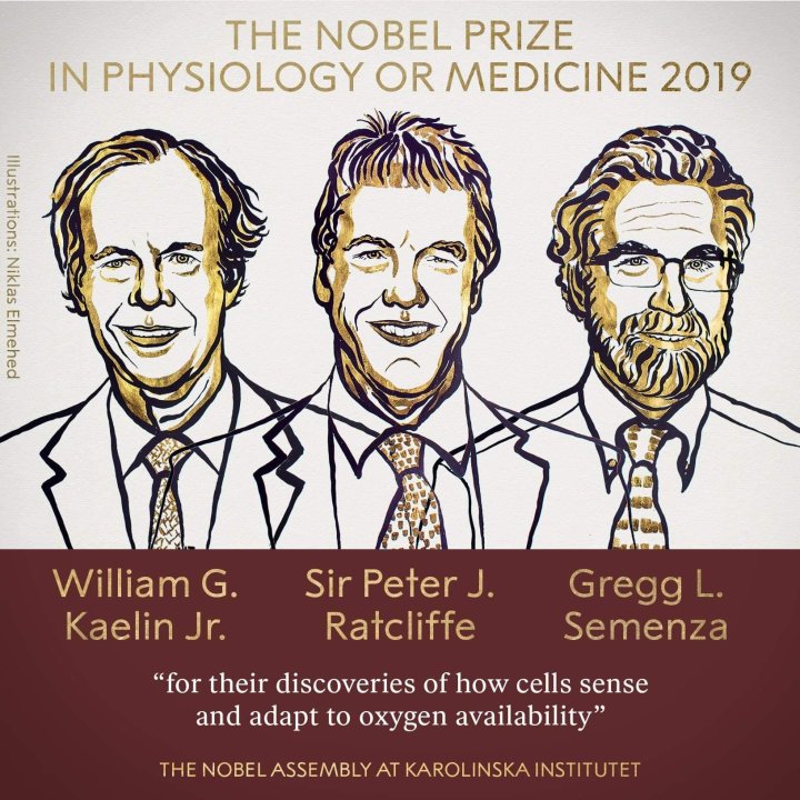 2019 के लिए नोबल पुरस्कारों का ऐलान शुरू हो चुका है। मेडिसिन के लिए संयुक्त रूप से विलियम जी कायलिन जूनियर, सर पीटर जे रैटक्लिफ और ग्रेग एल सेमेंजा के नाम की घोषणा की गई है। डॉक्टरों की इस टीम नें किस तरह से कोशिकाएं सेंस को समझती है और अपने आपको ऑक्सीजन के अनुकूल बनाती हैं,उसकी खोज के लिए मिला है।