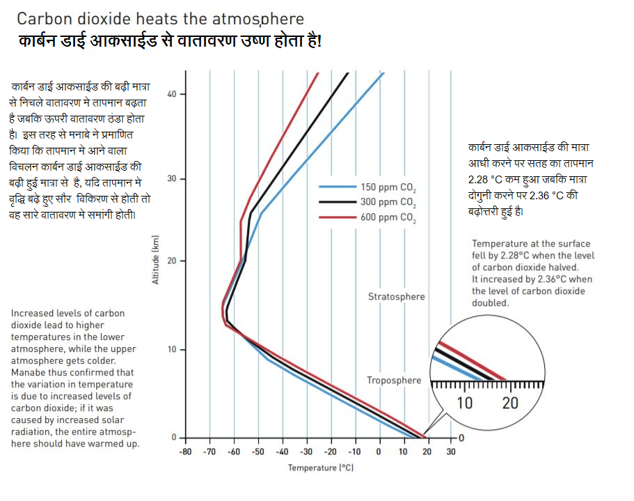 इस माडेल ने यह तय कर दिया कि तापमान मे वृद्धि कार्बन डाई आकसाईड मे वृद्धि के कारण है क्योंकि इस माडेल ने दर्शाया था कि जमीन के समीप तापमान बढ़ेगा जबकि ऊपरी वातावरण मे तापमान कम होगा। यदि सुर विकिरण मे बदलाव तापमान मे वृद्धि के लिए जिम्मेदार होते तो यह वृद्धि हर ऊंचाई पर समान होती।