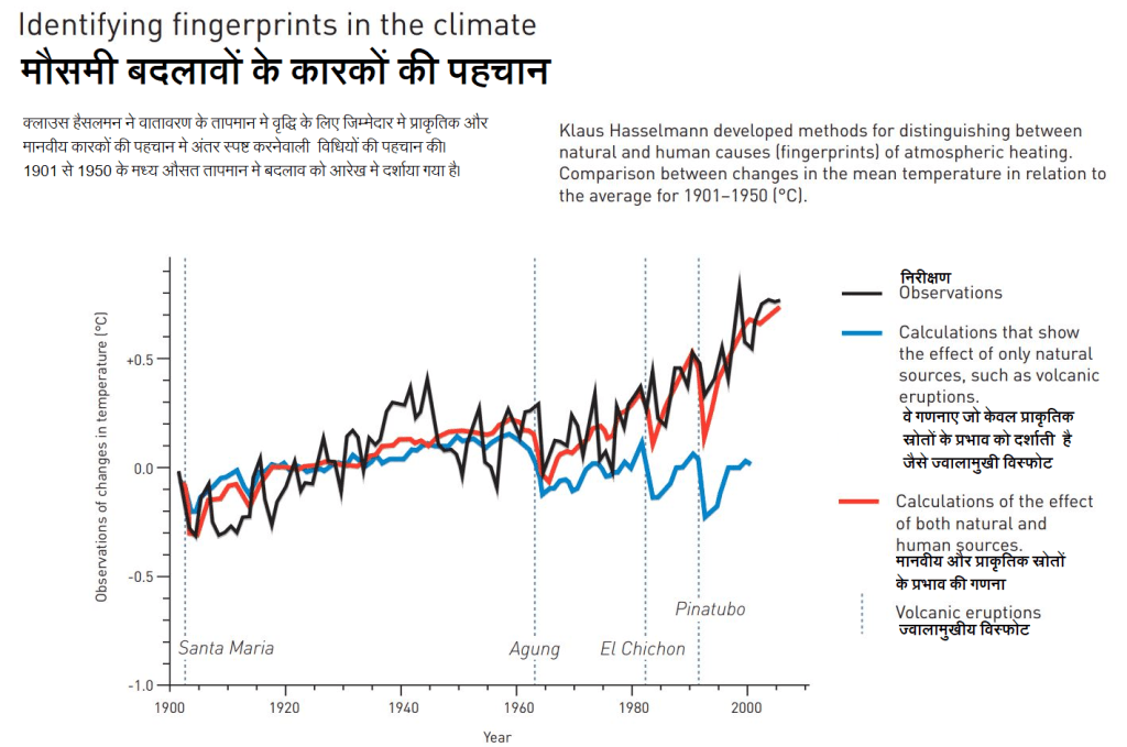 इसके दस वर्ष पश्चात क्लाउस हैसलमेन ने वातावरण और मौसम को जोड़ने वाला माडेल बनाया। इस माडेल ने दर्शाया कि किस तरह से वातावरण के अव्यवस्थित और अराजक होने के बावजूद मौसमी माडल मे मे बदलाव की गणना की जा सकती है और सटीक पूर्वानुमान लगाए जा सकते है। उन्होंने ऐसी विधियों की खोज की जिसके द्वारा मौसम मे प्राकृतिक तथा मानवीय हस्तक्षेप द्वारा पड़ने वाले विशिष्ट संकेतों और हस्ताक्षरों को पहचाना जा सकता है। उनकी इन्ही विधियों से प्रमाणित किया गया कि पृथ्वी पर बढ़ते तापमान के लिए मानव द्वारा उत्सर्जित कार्बन डाई आक्साइड उत्तरदाई है।