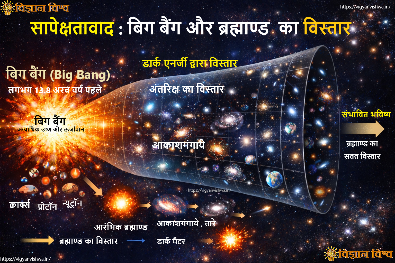 | 13.8 अरब वर्ष | वर्तमान ब्रह्मांड |