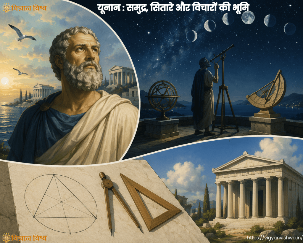 मैंने कहा, “यूनानियों के लिए विज्ञान केवल गणना नहीं था। वह सौंदर्य, दर्शन और तर्क का मेल था।”