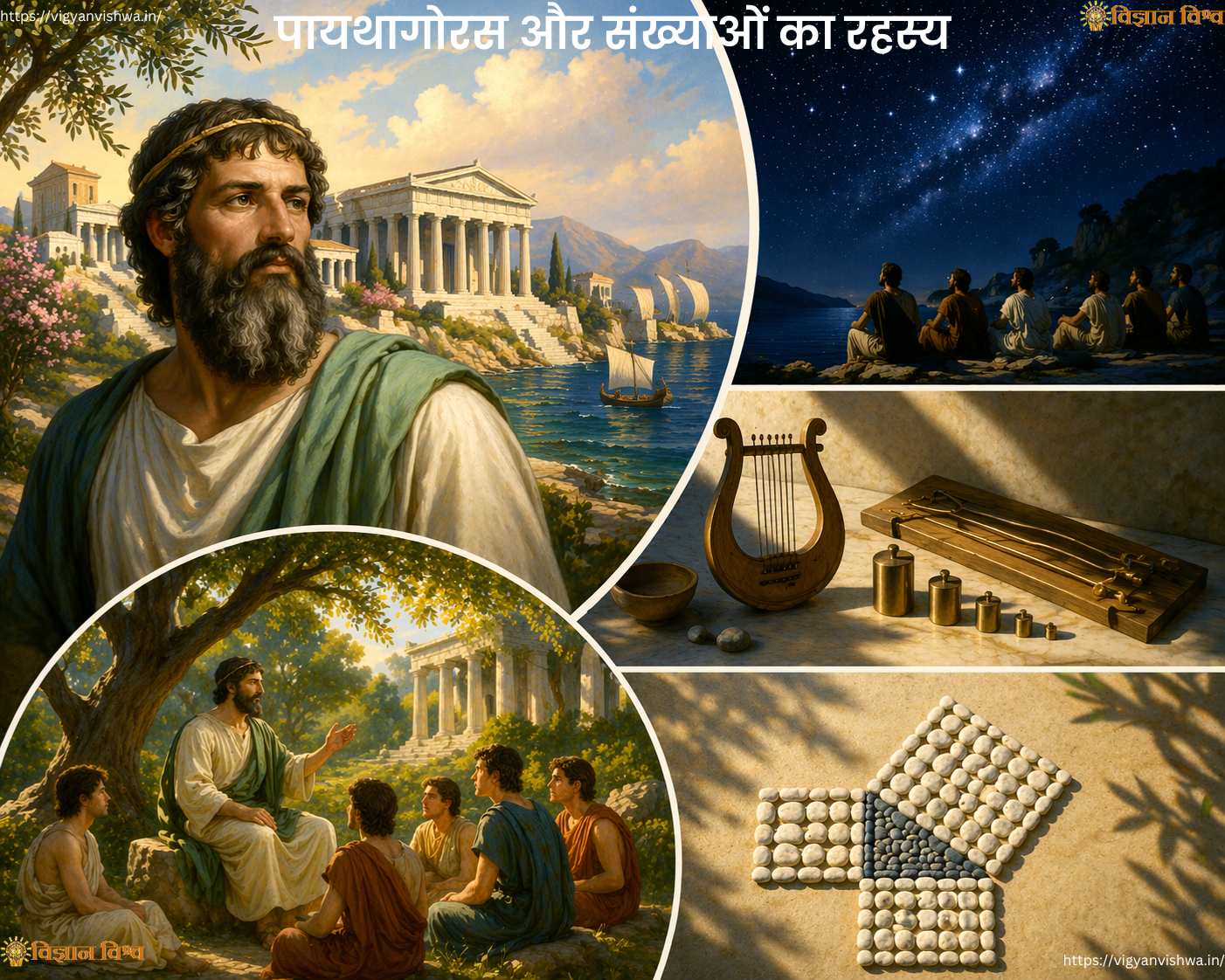“पायथागोरस का मानना था कि संगीत, ग्रहों की गति और ज्यामिति, सब संख्याओं के नियमों का पालन करते हैं।”
