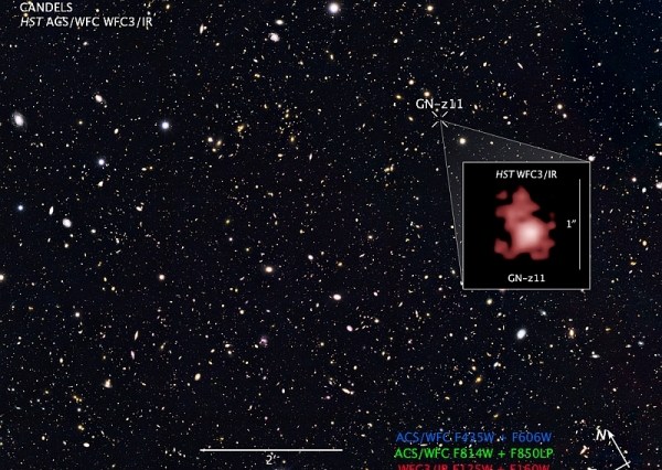 इस आकाशगंगा GN-z11 को सप्तऋषि तारामंडल के पास पाया गया है, यह खोज अत्यंत दूरी पर स्थित आकाशगंगाओ के सर्वे का एक भाग है। हब्बल दूरबीन के विस्तृत क्षेत्र वाले कैमरा तीन के प्रयोग से खगोल वैज्ञानिको ने आकाश मे पांच छोटे बिंदु देखे। यह कैमरा तीन अवरक्त प्रकाश के लिये अत्यंत संवेदनशील है।